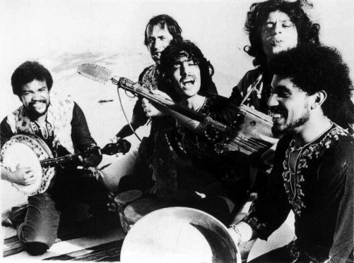 Inspiré de la musique « Gnaoua » (elle-même inspirée de la musique d’Afrique de l’ouest apportée par l’esclavage et les liens commerciaux reliant l’ancienne Mogador (actuelle Essaouira) à l’Afrique noire) ce groupe originaire d’un quartier pauvre de Casablanca décide dans les années 70 d’allier textes poétiques et protestataires. Les instruments principaux sont le chant, le banjo, et le sintir ou guembri (instrument à cordes d’Afrique noire à 3 cordes pincées et frappées sonnant un peu comme une basse) qui dans un format plus petit sert en Afrique Noire aux griots. L’ornementation Gnaoua est là pour s’émanciper d’une culture arabe trop présente et est une manière de réhabiliter la culture ancestrale africaine.