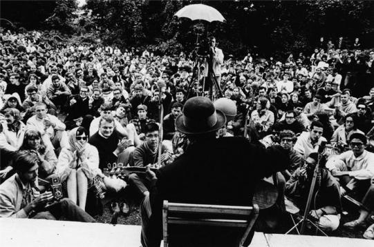 Malgré tout, il n’eut pas l’honneur de porter le badge réservé aux musiciens lors de ce festival, mais un badge d’invité comme peut le prouver une photo célèbre du chanteur.