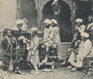 Les cafés chantants étaient un phénomène typique du Caire dès la première partie du XIXE siècle. Autour des jardins à l’anglaise de l’Azbakiyya (commandés par le Khédive Ismâ’îl), les cafetiers s’attachaient le service d’un chanteur renommé qui attirait les clients avec son répertoire de musique savante. Sous l’influence des cafés-concerts à l’européenne, importés par les communautés étrangères, et suite à l’ouverture de nombreuses salles de théâtre au Caire à partir des années 1880, le café chantant ouvert sur l’extérieur se transforma au tournant du XXe siècle en établissement fermé et payant, dans lequel un spectacle sur scène, incluant chanteurs, danseuses et divers numéros, était offert à un public essentiellement masculin. Parfois, une aile séparée par un voile pudique permettait aux épouses d’hommes aux idées libérales d’assister incognito au concert d’un grand chanteur.